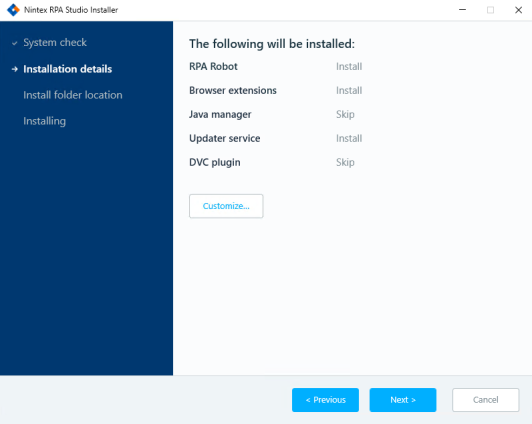 Once you have edited your JSON file parameters according to your organization's needs, run the installation wizard for your downloaded RPA Studio.