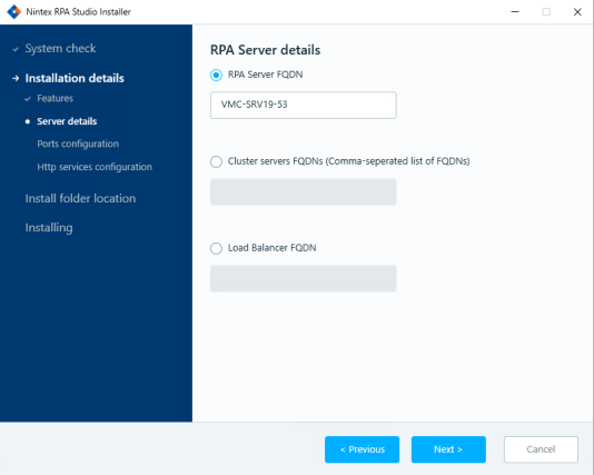 RPA Server FQDN: These details are automatically populated.