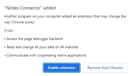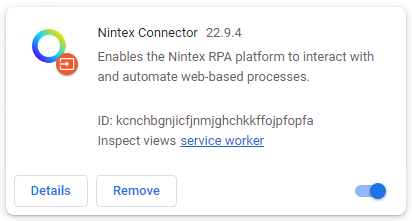 The Nintex Connector extension will be automatically installed when you install or upgrade your Nintex Robot and Studio clients. Be sure to enable it when prompted in Chrome: