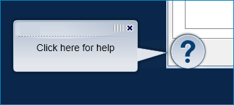 A help button is a robot-controlled bubble (icon) that allow the user to simultaneously display or hide all other robot-controlled bubbles and tooltips on the screen. By default, a help button hides all robot-controlled bubbles that precede it until it is clicked. It appears as an icon on the screen, anchored to a hint bubble that appears when the user hovers over the icon with the mouse cursor: