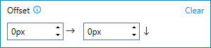 The offset settings for current step's core action appear in the Position tab of the Properties Pane. By default, offset is set to 0 pixels (both horizontally and vertically):