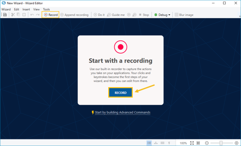 On the menu bar, select Wizard > Record