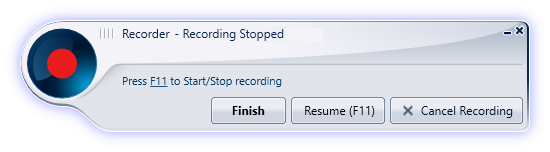 To change the hotkey used to Start/Stop recording (by default, F11), click the F11 link in the Recorder bar and select a different hotkey from the dropdown list that appears.