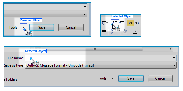 The detection mechanism is designed to detect distinct GUI items such as icons, buttons, and text.