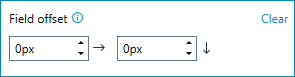 The field offset settings appear in the Position tab of the Properties Pane. By default, field offset is set to 0 pixels (both horizontally and vertically):