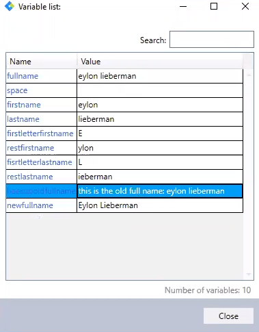 If you click Do it, the process will run. When it is done, you'll see the process Variable list (as set in the original Global Function) and the additional customized Set value command (that is added to this specific wizard):