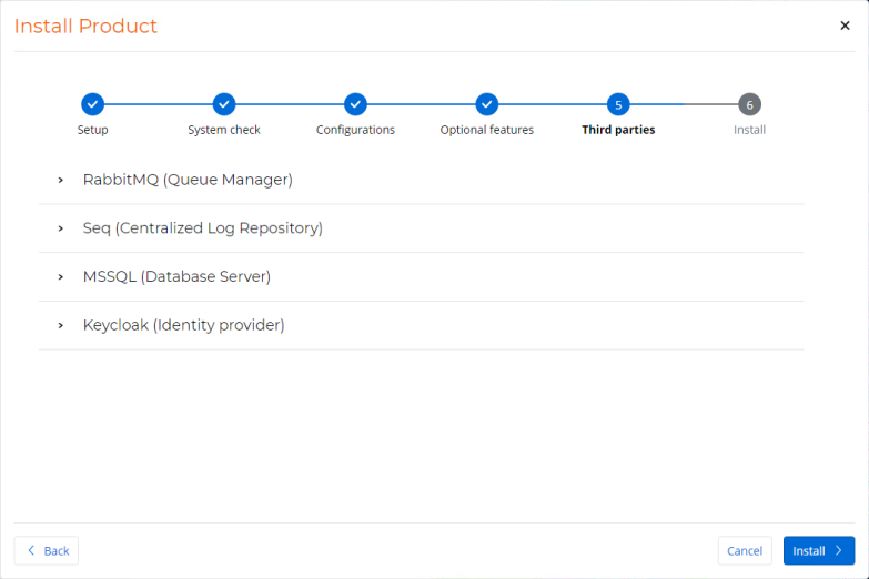 Once you have finished configuring your settings, complete the installation by clicking Install >.