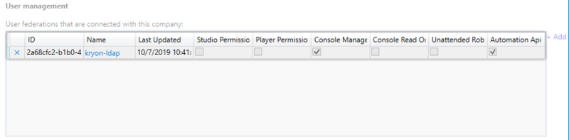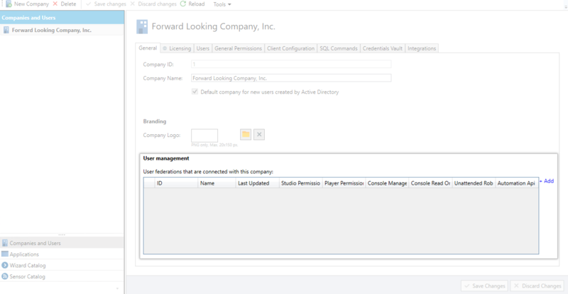 In the Entities Pane, select the company with which you want to associate a user federation.