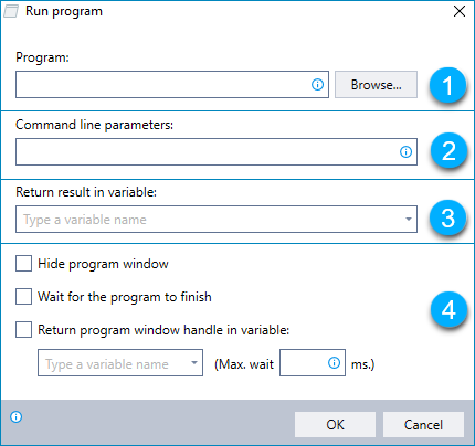 Enter the name of the variable into which you'd like to place the returned result. This field is relevant only for an executable program that returns a result