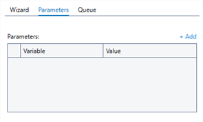 (Optional) Click the Parameters tab and enter the values for some or all of the task wizard's variables. If you want the other wizards embedded within this automation to start with specific values for certain variables each time they run, enter the name of the variable for which you want to set a starting value for. Make sure to use the exact variable name (it's not case-sensitive). Then, enter the starting value for the variable.