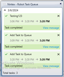 To access the Nintex - Robot Task Queue, right-click on the Nintex Assistant icon located in the taskbar tray and select Open Robot Task Queue.