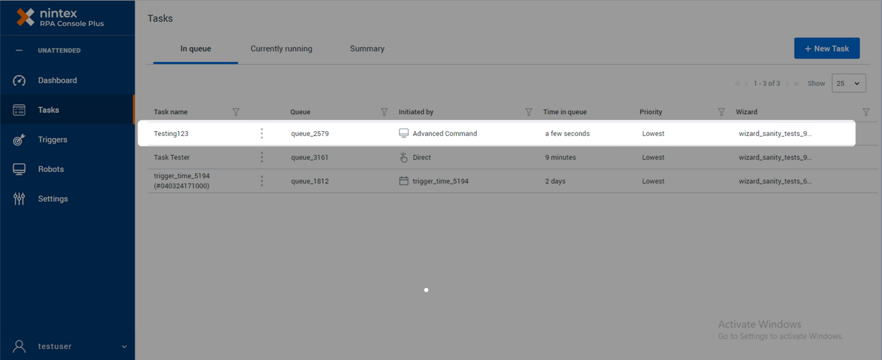 Attended users and robots can use this command in both sensors and wizards. This command allows you to add tasks to the Nintex - Robot Task Queue.