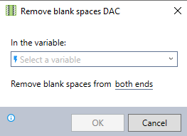 | In the variable | The variable from which you want to remove blank spaces. | Select the variable that stores the data you want to clean. |