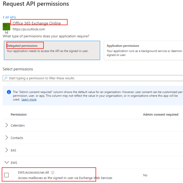Select Delegated permissions when your application requires specific user permissions to access the API online. When attempting to access the application, it impersonates the user to gain access. This process involves using credentials like the username and password associated with the user. If the necessary permissions are not granted, the application will deny access to the API.