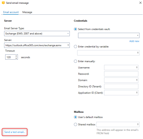 Follow these steps to set up email functions in the Nintex RPA platform to work with modern authentication: