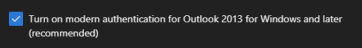 Confirm that Turn on modern authentication for Outlook 2013 for Windows and later is selected.