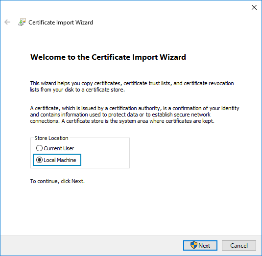 The Windows Certificate Import Wizard will open.