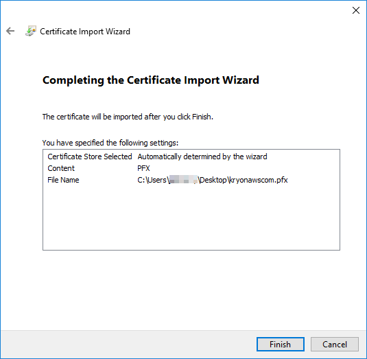 Double-click the *.pfx certificate.