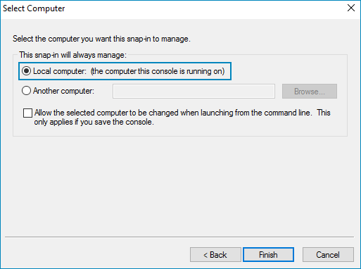 Select the Local computer option, then click the Finish button.