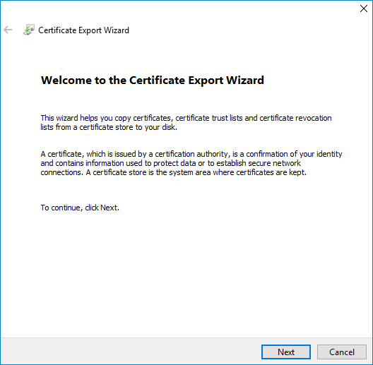 The Windows Certificate Export Wizard will open.