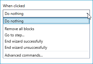 Select an option from this dropdown list to determine how the wizard should proceed once the user action is either denied, stored, or allowed. The default option is Do nothing.