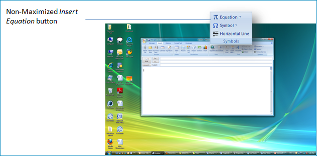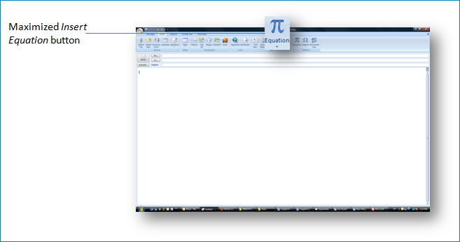 If the Keyboard shortcut fallback was applied to this step, it is activated and the wizard types the specified shortcut keys (e.g., ALT+N+E) to click the Equation button.