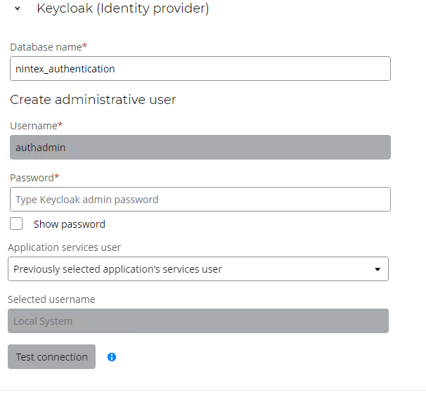 Username and password: If you select this authentication method, enter the SQL username and password. Double-check for accuracy and avoid any typing errors, as incorrect passwords can result in installation failures. The username and password must be for an existing user account; you cannot create a new user for this purpose.