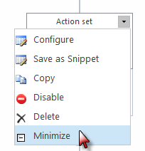 The action set can be minimized by activating the title bar's drop down menu and clicking Minimize.