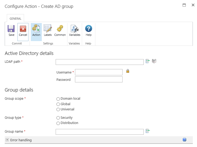 This workflow action will create an Active Directory group in the specified LDAP location.