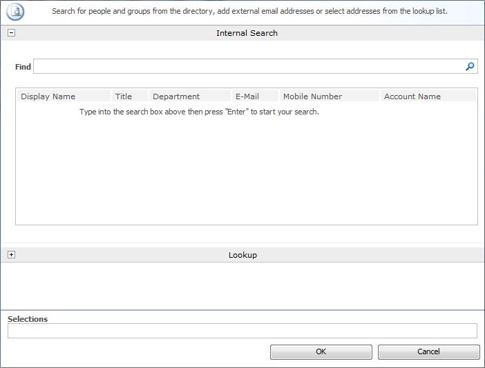 To search for users, click on the address book icon to the right of the input box. The Select People and Groups dialog will appear.