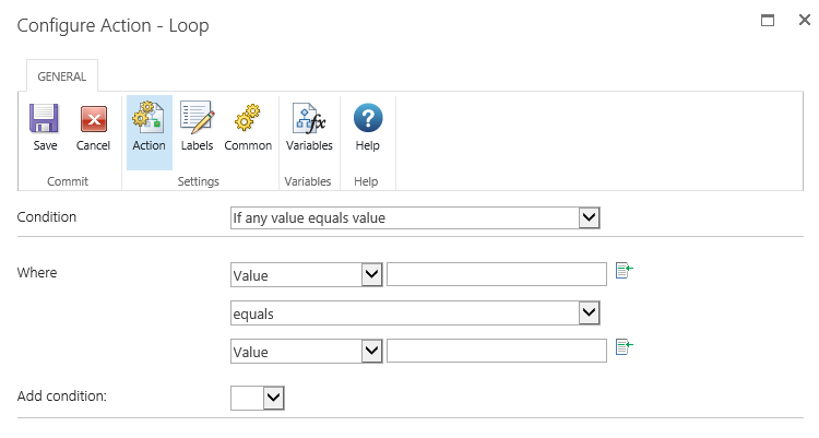Configuring this action is similar to the Set a condition action.