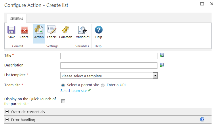 Allows the title of the task to be defined. This is the title that appears in a SharePoint task list. If left blank, the action title will be used by default.