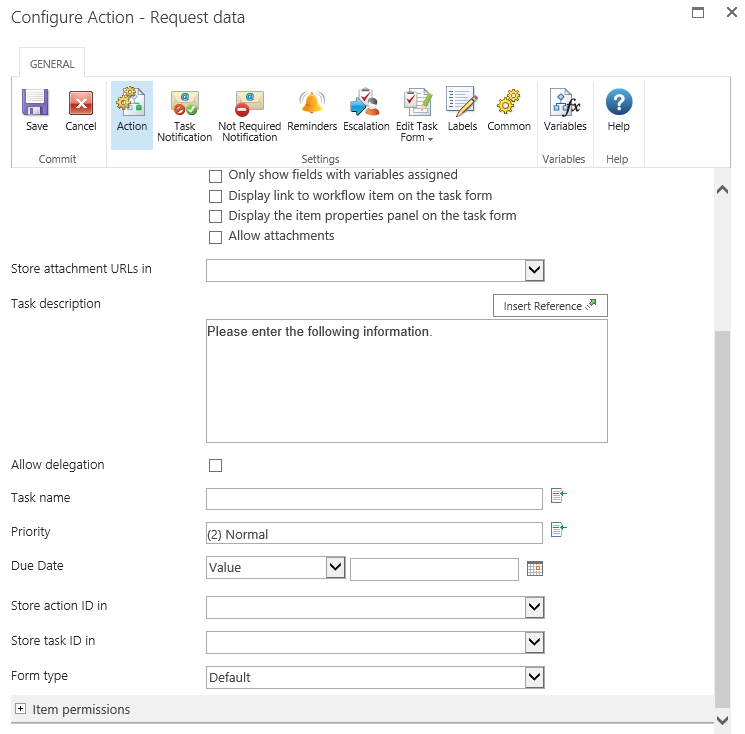Note: Setting the item permissions could be useful when the task is delegated, this will give the delegated user the necessary permissions to view the item.