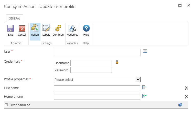This workflow action will update the SharePoint user profile information of a user.
