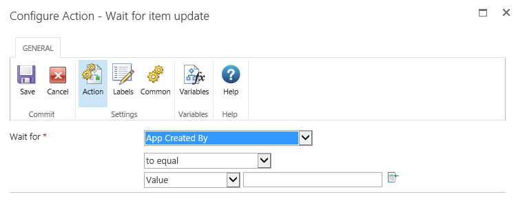 The condition contains the comparison that must be true for the workflow to move past this action. A comparison operator and a value must be specified. Refer to Using lookups for more information.