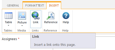When inserting a reference into a Rich Text box, the reference can be inserted as a hyperlink.