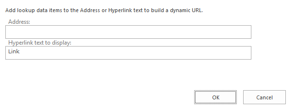 Note: By placing the cursor in either Address or Hyperlink text to display textboxes, a combination of lookup data and manually typed plain text can be used.