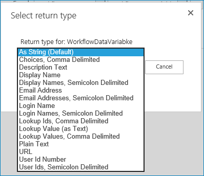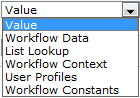 In many workflow actions within Nintex Workflow, values can be set at run time with lookups. A lookup provides the ability to reference and use a value within the workflow action. When the option to select a lookup is available, four options will be presented in a drop down menu.