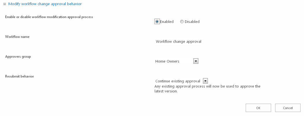 - Click on Modify workflow change approval behaviour.