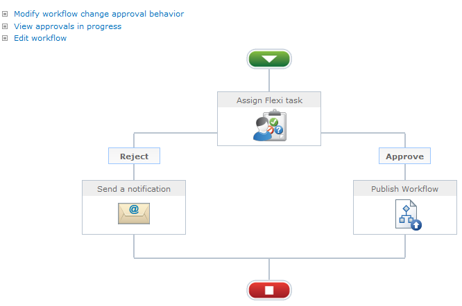 Once configured, a standard change approval workflow will be displayed and links will appear allowing the user to View approvals in progress and Edit workflow.
