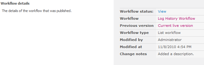 - Workflow: The workflow that is being published.