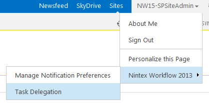 - Mouse-over Nintex Workflow 2013, then click on Task Delegation.