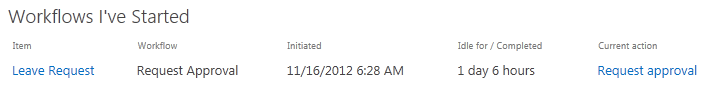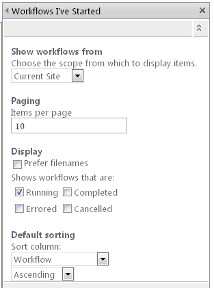 Web Part Settings: Workflows I've Started