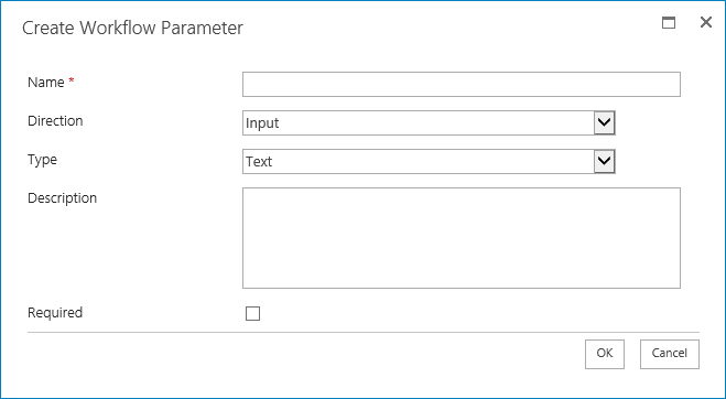 - In the Modify workflow parameter dialog, make the changes. Changes to the type cannot be made.
