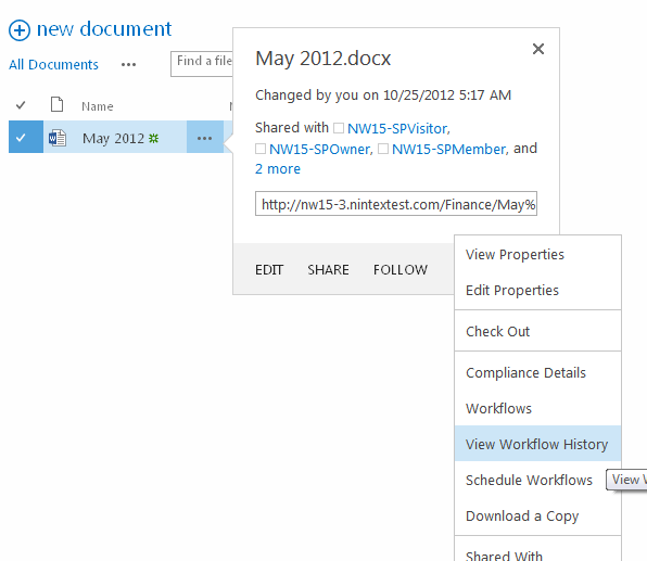 , and then click on the dots again to open the extended menu. Select View Workflow History.