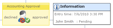 - In the Workflow Viewer, mouse over an action's icon, it will provide information about it in a dialog box. In the case of the 'Request approval' and 'Request review' actions the states can be Approved, Rejected, Pending, Cancelled, Not required and Continue (Request review only).