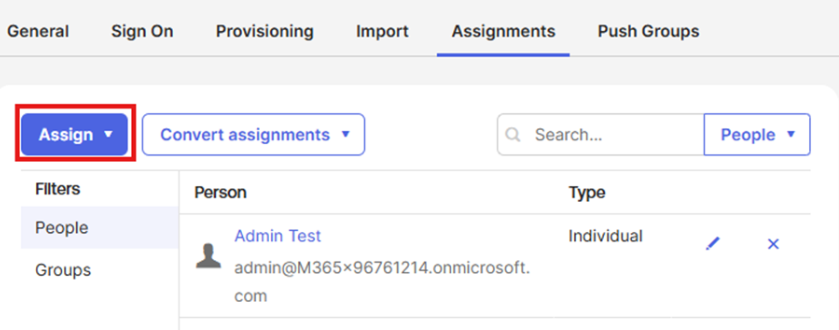 • OKTA SCIM test app: the application in Okta set up to provision identities using the SCIM protocol.