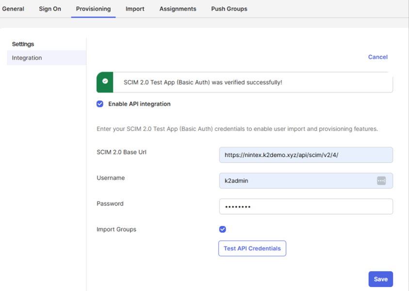 Configuring Okta SCIM integration for Nintex Automation K2