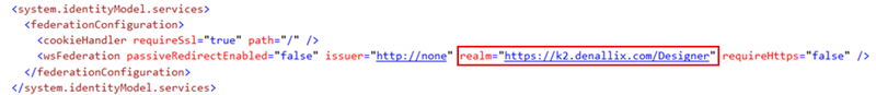 The realm is the unique value that associates the K2 site with the claims authentication options. Audience URIs are the actual URLs that you use to access the K2 site. You can specify extra Audience URIs for a single Realm. For example, if you use https://k2.denallix.com/Runtime and http://dlx:82/Runtime to access the same underlying site, you need both URLs registered as Audience URIs.Realms must exactly match your identifier URIs that you added to the Azure app's manifest without trailing slashes. Do not remove the trailing slashes under Reply URIto avoid redirect loops.Link each realm to your AAD issuer by following these steps:- Open Management and expand Authentication>Claims>Realms.