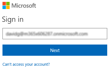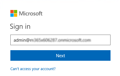 - The Microsoft Sign in page opens. Log in with an Azure identity other than your tenant administrator (for testing purposes)